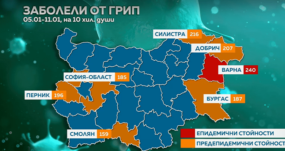 Грипът настъпва в страната, като във Варна беше обявена грипна епидемия от 14 януари, а в редица други региони се отчита ръст на заболеваемостта от остри респираторни заболявания, предава БТА.