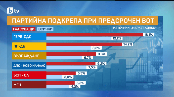 Близо 40 на сто от анкетираните попадат в графата на колебаещите се, вероятно защото очакват дали президентът Румен Радев ще направи партия за участие в изборите, сочи изследването на „Маркет линкс”.