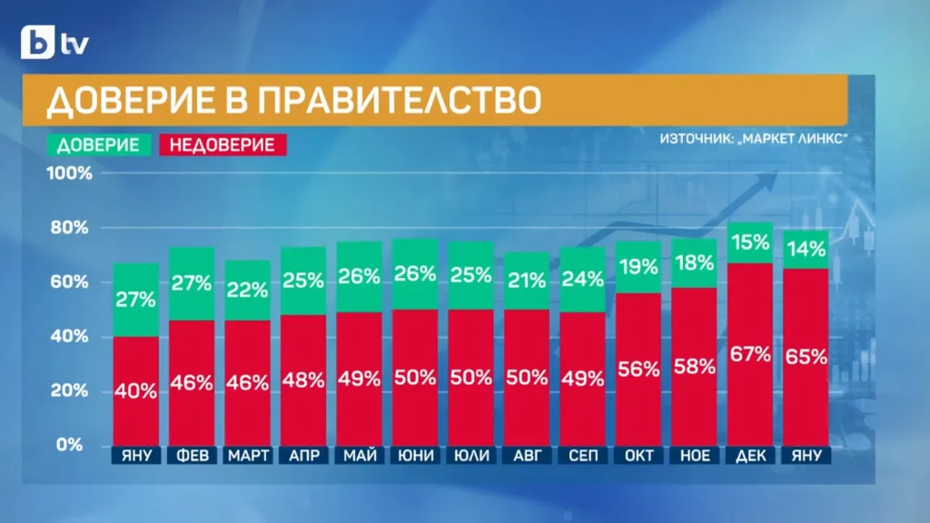 Кабинетът „Желязков“ се движеше по второ по размер доверие. Устойчиво позициониране за правителството до лятото, след това видяхме спад. Това заяви пред БТВ социологът Добромир Живков, който представи новото социологическо проучване на „Маркет Линкс“.