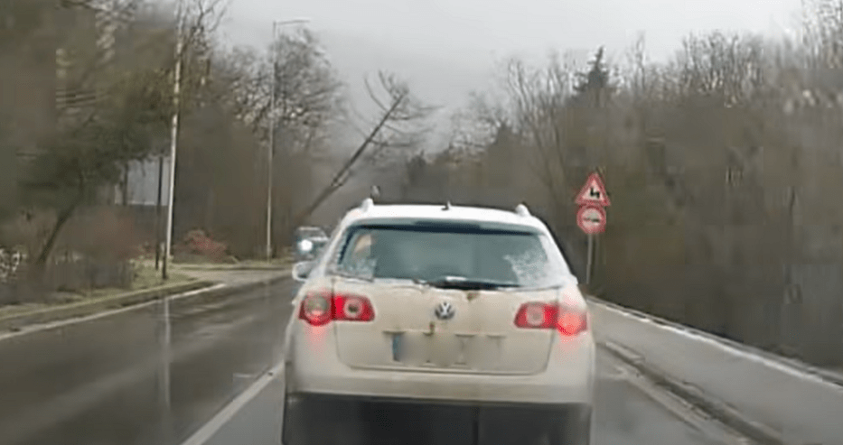 Камера от автомобил улови момента, в който дърво се стовари на пътя за курортния комплекс „Златни пясъци“ край Варна. От видеото, публикувано във фейсбук групата „Виждам те КАТ – Варна“ не става ясно дали има пострадал автомобил, тъй като возилата в момента на падането продължиха пътя си.