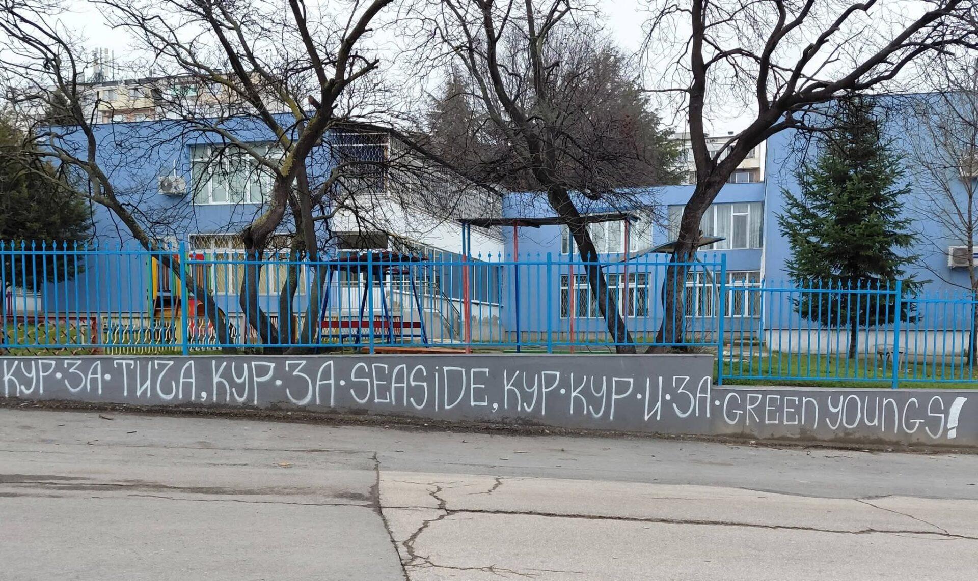 Варненец публикува снимка във Фейсбук, на която се виждат грозни и нецензурни надписи върху оградата на ДГ „Детски свят“ в квартал „Владиславово“. На кадъра ясно личи изписаната дума „К*Р“, поставена на видно място откъм улицата.