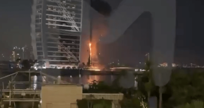 Комплексът „Бурж ал Араб“ в Дубай беше ударен от ирански дрон или ракета през нощта на 28 февруари срещу 1 март. Това се вижда на проверени кадри, които се разпространяват в социалните мрежи. 321-метровата кула с 60 етажа се издига на изкуствен остров.