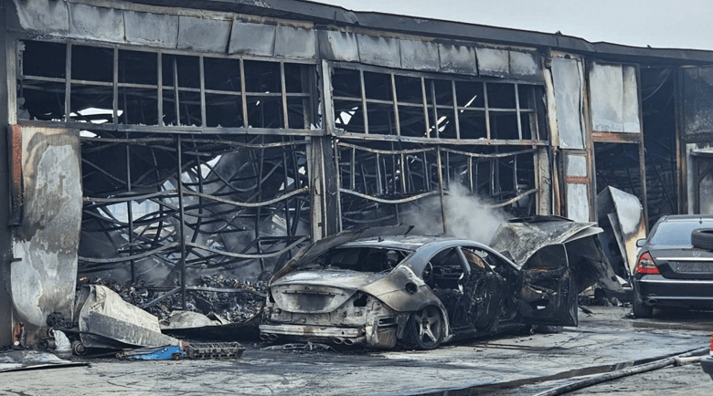 Пожар в автоморга лумна снощи в хасковския квартал „Болярово”. Пламъците обхванали голямо хале, коли и гуми, складирани извън него.
