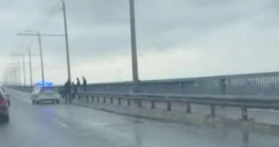 „Ходещ човек по външния парапет на Аспарухов мост. Посока център. Подадох сигнал в 10:05 и гледам, че полицията е реагирала веднага“, пише И. Димов във Facebook.