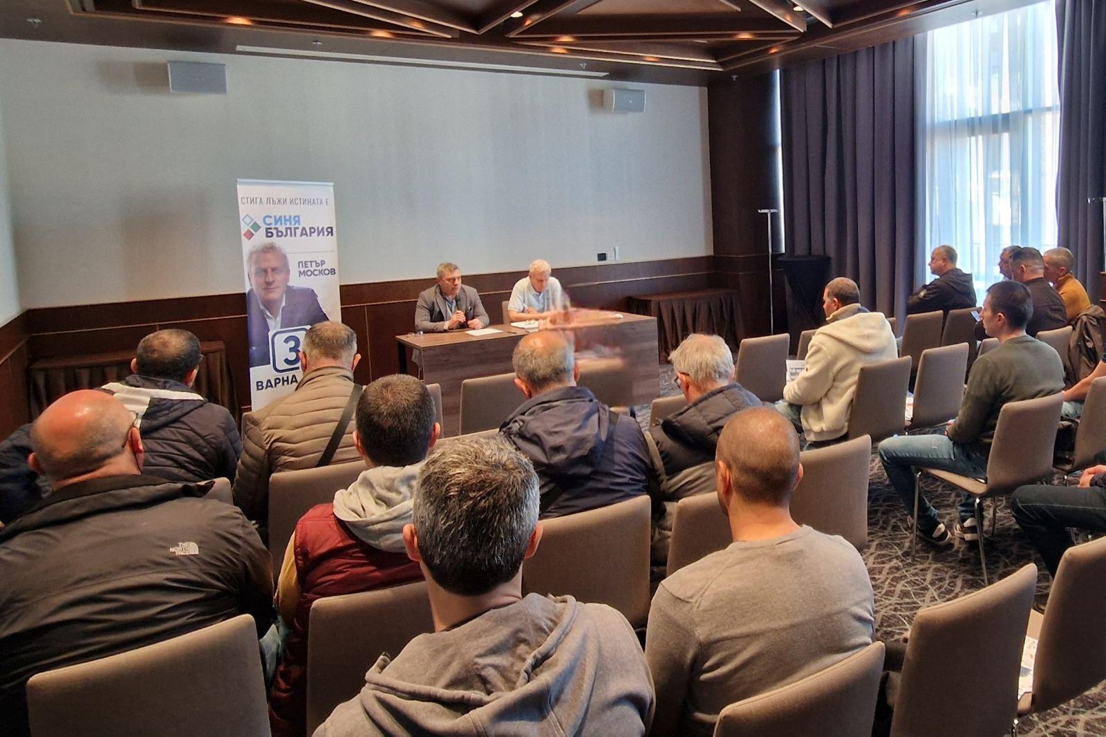 Петър Москов представи пред моряци във Варна предложенията на „Синя България“ за премахване на дискриминацията в бранша и привеждане на несправедливото данъчно облагане на голяма част от работещите към статута на плаващите под европейски флаг. „Синя България“ застава зад искането на моряците тези условия да бъдат изравнени и всички моряци да бъдат облагани с 1%, каквото е условието за плаващите под флага на ЕС Това заяви водачът на листата на „Синя България“ във Варна пред събралите се в хотел „Черно море“ професионалисти от бранша.