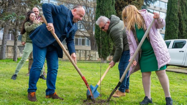 В рамките на инициативата бяха засадени 32 дръвчета от видовете ясен и червен дъб, които ще допринесат за още по-зелена, приветлива и устойчива университетска среда.