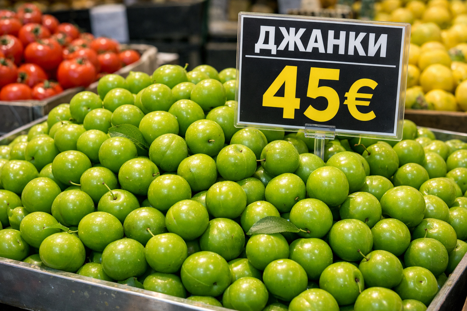 Мариана Кандова е търговец и току-що се връща от голяма борса, от която се снабдява с плодове. Разгледала е всички артикули и цени там. Зелени джанки няма. А Ангел Петров от село Три кладенци казва, че в интернет пише, че джанките са по 80 евро за килограм, пише NOVA.
