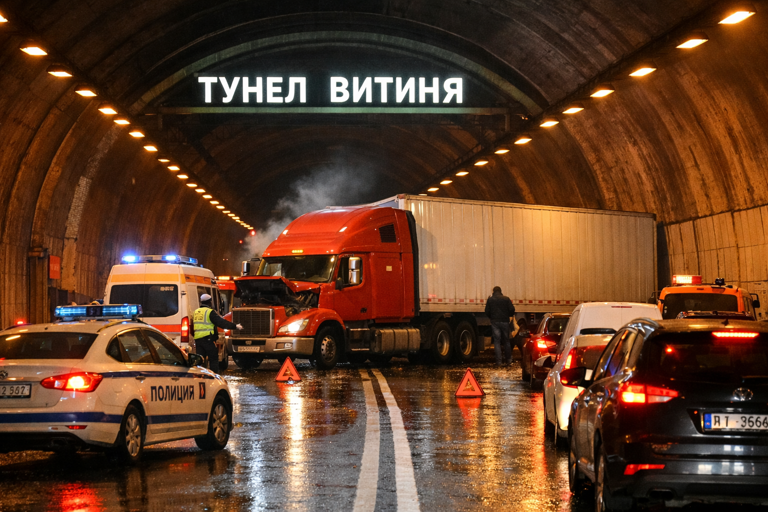 Камион аварира и затруднява движението в тунел „Витиня“ на „Хемус“