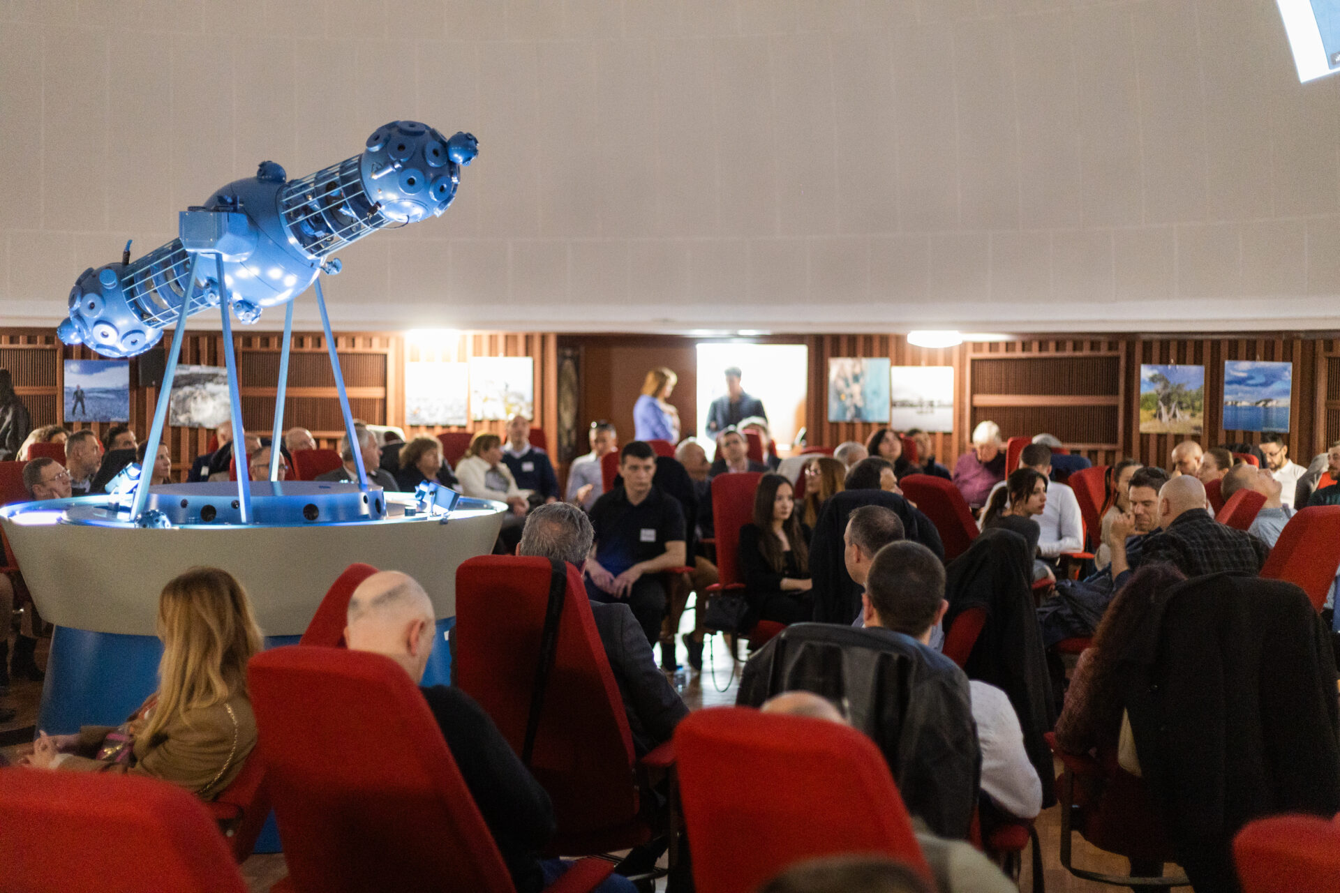 Събитието бе открито от проф. Валентина Петрова, ръководител на катедра „Информационни технологии“ към ВВМУ, която приветства гостите и подчерта важността на партньорството между образование и бизнес за развитието на региона. Атмосферата бе допълнена от впечатляваща визуална демонстрация под купола на планетариума – танцът на звездите и изгрева на Слънцето, които превърнаха вечерта в запомнящо се преживяване.