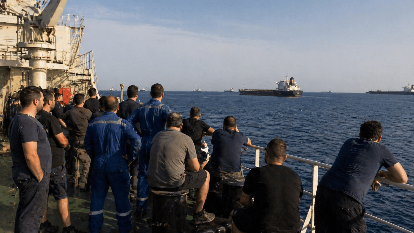 В същото време условията на борда се влошават – много екипажи съобщават за недостиг на храна и питейна вода, а доставките са силно ограничени. Комуникацията със семействата също е нестабилна заради прекъсвания на интернет връзките.