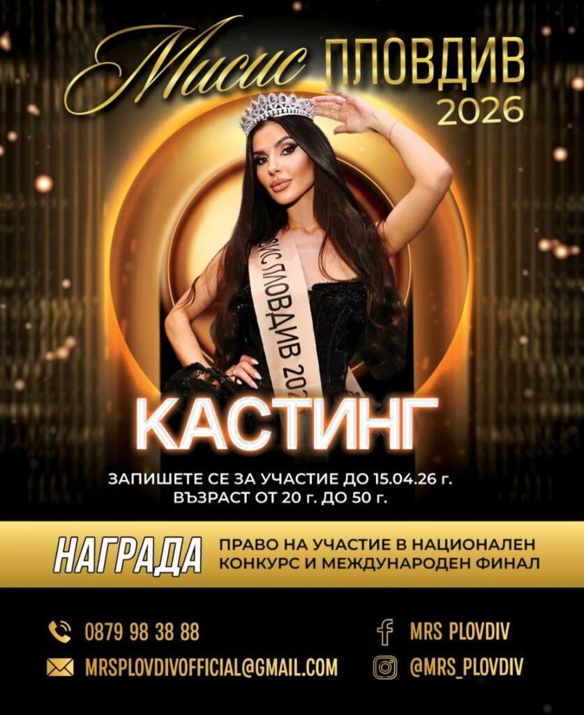 Организаторите на престижния и официално регистриран конкурс Мисис Пловдив, обявиха началото на кастинга за изданието през 2026 година. Събитието, което вече се утвърди като значим акцент в светския и културен живот на града, ще се проведе за трета поредна година.